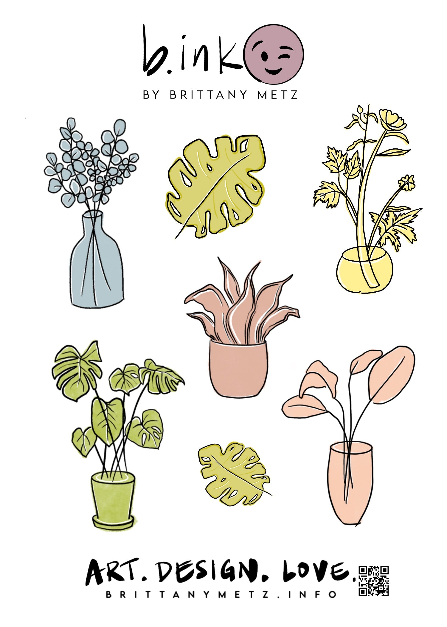 Hand-illustratedĀ Matte Sticker Sheet with 8 Botanical stickers per sheet š